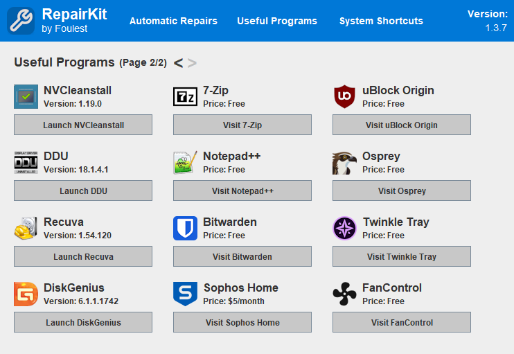 Additionally, RepairKit provides links to useful software tools, including: