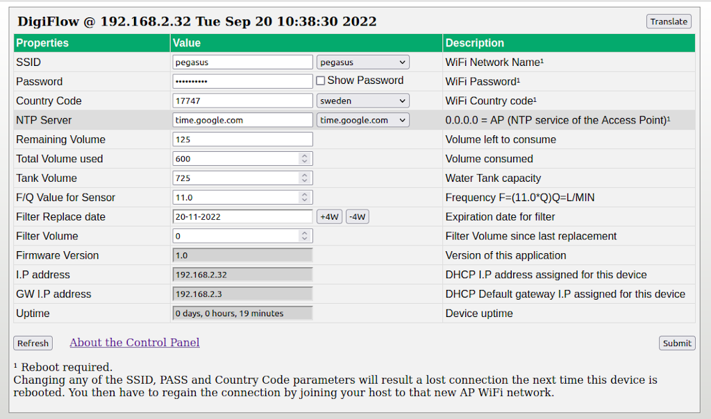 - Alter the default WiFi credentials in ./examples/water-ctrl.h