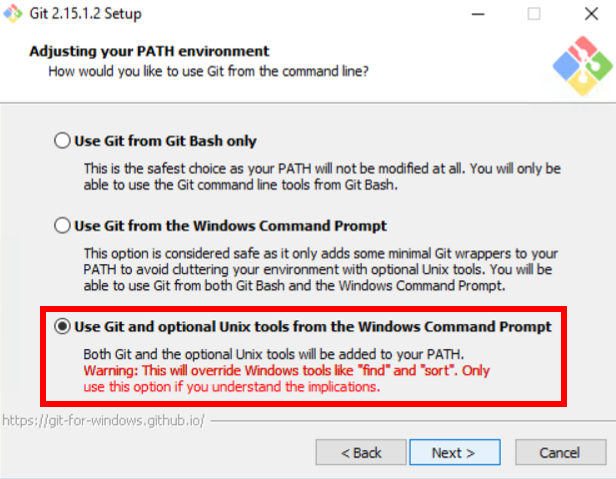 It's a suggestion to "use Git and optional Unix tools from the Windows Command Prompt." The rest of the options, the default settings will work.